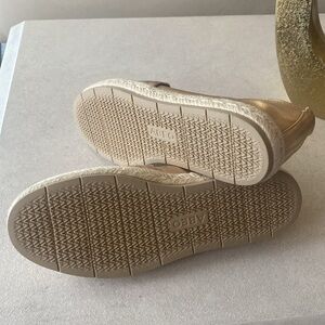 NEW ABEO Isle Leather Slip-On Metallic Gold walking shoes