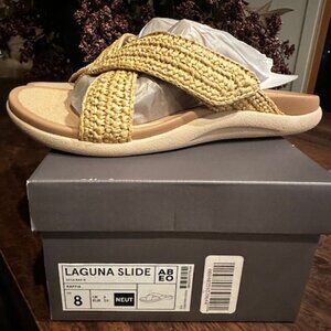 ABEO Laguna Slide Sandals in Raffia, Size 8
