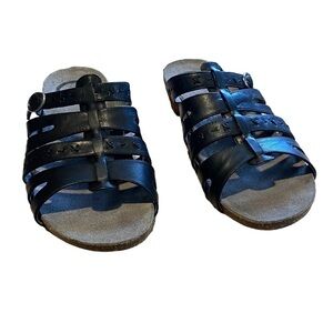 • Supple Black leather, arched outsole, curved to meet the needs of a walker.
