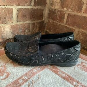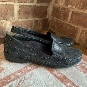 ABEO 24/7 Leather Orthopedic Comfort Slip Resistant Flats Shoes Black Print Size 8.5. See photos for condition.