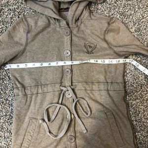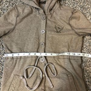ABERCROMBIE AND FITCH AUNTHENTIV VINTAGE TAN HOODED BUTTON FRONT COTTON JACKET
