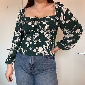 ABERCROMBIE AND FITCH - Green Floral Ruched Blouse (Size M - LIKE NEW)