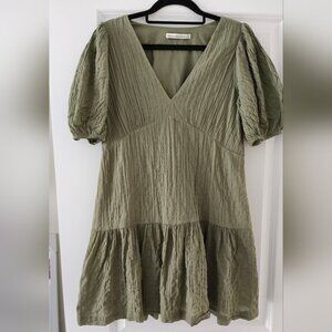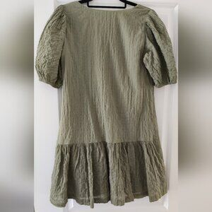 Abercrombie Fitch Puff Sleeve Trapeze Olive Green Mini Dress Size XS