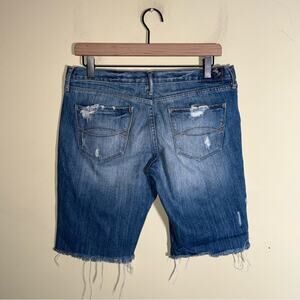 ABERCROMBIE AND FITCH distressed Bermuda Raw hem denim shorts 8