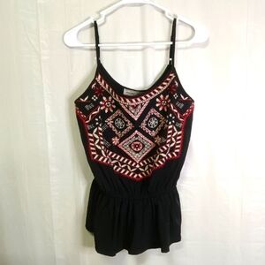 #embroidered tank top #spaghetti strap top #boho style top #black tank top #NWT Abercrombie top #Abercrombie women's tops #boho #embroidered #spaghetti strap #casual #summer #overlayer #polyester #bohemian