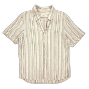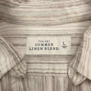 ABERCROMBIE Camp Collar Summer Linen Blend Shirt Ecru Stripe Button Down Resort