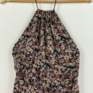 ABERCROMBIE & FITCH Black Floral Chiffon Halter Tie Mini Dress Womens Sz Small