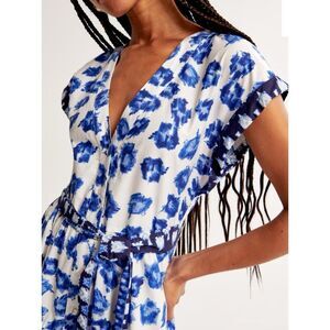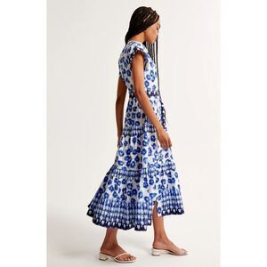 ABERCROMBIE & FITCH Cotton Tie Maxi Dress in Blue Pattern Size L