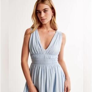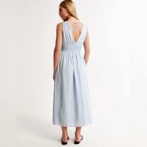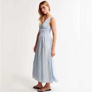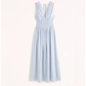 ABERCROMBIE & FITCH Crinkle Textured Smocked Maxi Dress Light Blue Sz M NWT 3H42