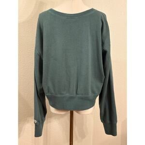 ABERCROMBIE & FITCH Cropped Sweatshirt | Green Shimmer Long Sleeve | LARGE