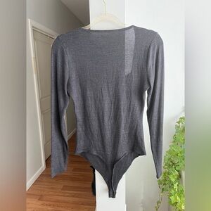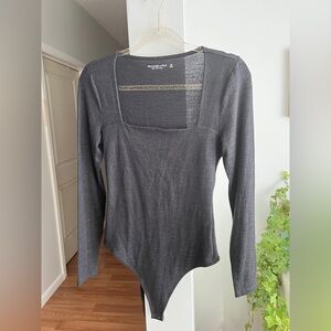 ABERCROMBIE & FITCH Dark Grey Square Neck Long Sleeve Bodysuit
