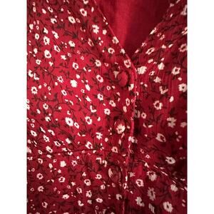 ABERCROMBIE & FITCH Dark Red Ditsy Floral Button V-Neck Tie-Back Dress - Sz S