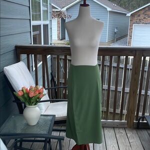 This elegant green midi skirt is perfect for spring! Its sleek design offers a flattering fit, making it a versatile addition to your wardrobe.