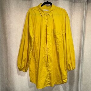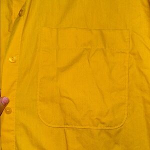 Bright yellow dress with a button-down front. Features a classic collar and chest pocket. Perfect for casual wear.