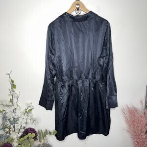 ABERCROMBIE & FITCH Long-Sleeve Satin Drapey Shirt Dress Black {VV18}