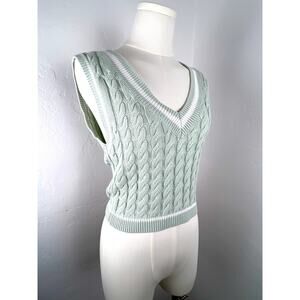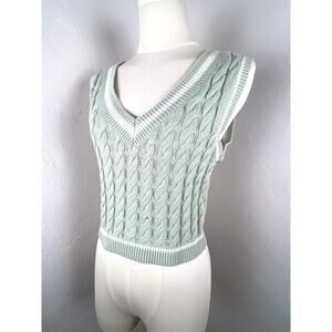 ABERCROMBIE & FITCH Muted Seafoam Green V-Neck Cable Sweater Vest (Woman: Small)