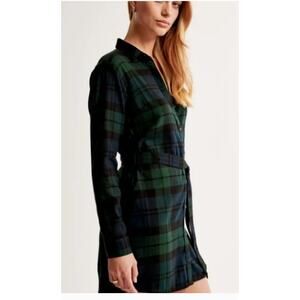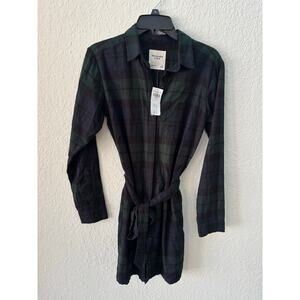 ABERCROMBIE & FITCH NWT Blue Green Plaid Long Sleeve Shirt Dress X-Small $70