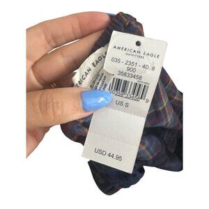 This Abercrombie & Fitch navy blue plaid peasant top is a stylish addition to any wardrobe. Featuring a comfortable fit and a flattering silhouette, it's perfect for casual outings or a night out. Brand new with tags, this top offers both quality and fashion.