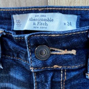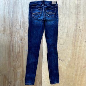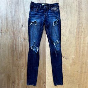 Excellent Condition ABERCROMBIE & FITCH SKINNY LOW RISE Women’s Embellished Destructed Dark Wash Denim Jeans sz W24 / 00