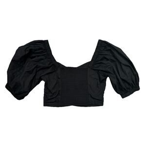 ABERCROMBIE & FITCH SMOCKED BACK PUFF SLEEVE CROP BLOUSE WOMENS SZ MEDIUM