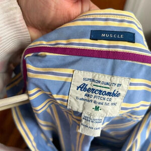 ABERCROMBIE & FITCH STRIPED MUSCLE FIT BUTTON DOWN SHIRT