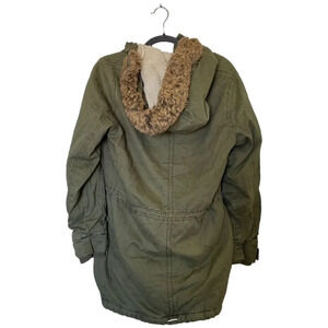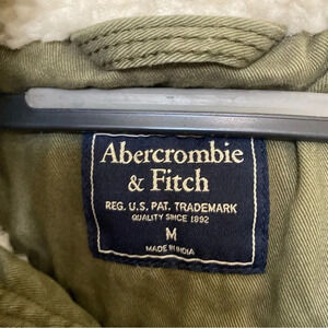 ABERCROMBIE & FITCH Sherpa Lined Parka Olive Green Faux Fur Hood Size Medium