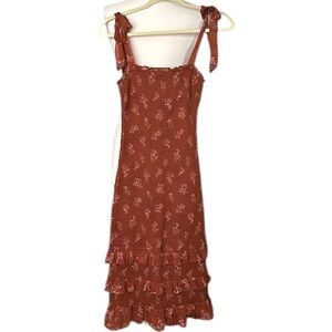 ABERCROMBIE & FITCH Smocked Tiered Ruffle MIDI Dress Brown Floral Y2K, Small