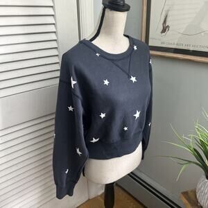ABERCROMBIE FITCH Sweatshirt Womens Medium Blue Pullover Stars Cropped Atheisure