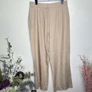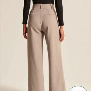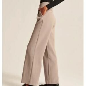 ABERCROMBIE & FITCH Tailored Wide Leg Pant Heathered Taupe Khaki Tan Sz L {3W33}