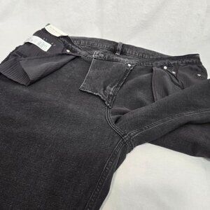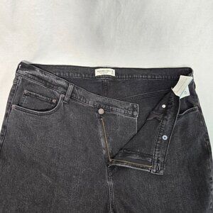 ABERCROMBIE & FITCH Curve Love The '90s Slim Straight Ultra High Rise Trendy Crisscross Waist Black Denim Jeans Size 36/22R.