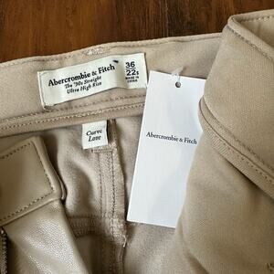 ABERCROMBIE & FITCH The 90s Straight Pants Womens Sz 36 Beige Vegan Leather NWT W11824