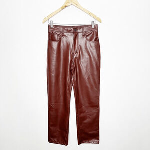 ABERCROMBIE & FITCH Vegan Leather 90s Straight Pant Brown WOMENS 28 6 REGULAR