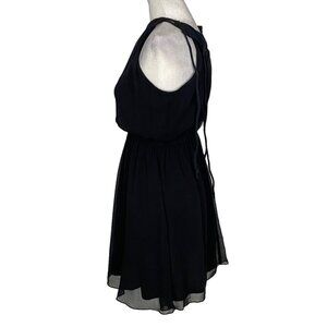 ABERCROMBIE FITCH Women Chiffon Overlay Mini Halter Dress Size M Black Chic 4-22