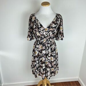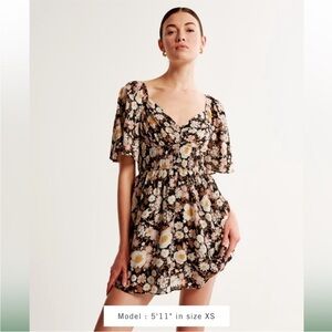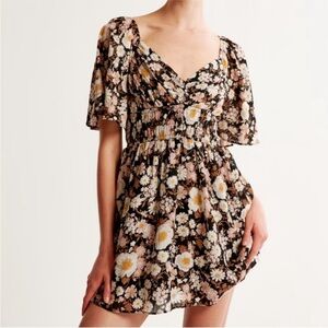 ABERCROMBIE & Fitch Angel Sleeve Smocked Waist Mini Dress Floral Size S Tall