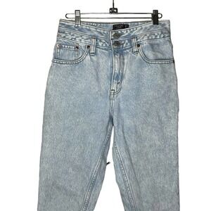 ABERCROMBIE & Fitch Mom Jeans 26 / 2 High Rise Raw Hem Acid Light Wash