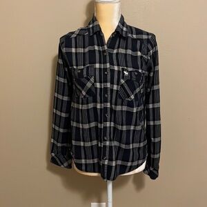 ABERCROMBIE & Fitch Navy and White Plaid Button Down Flannel Shirt Size XS