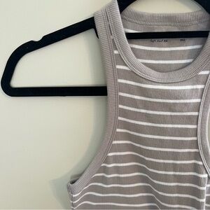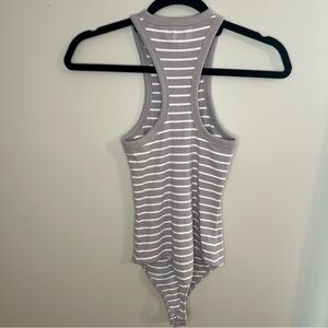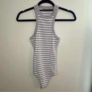 Size XS striped bodysuit from Abercrombie & Fitch. Gray and white stripe. Ribbed. Thong bodysuit.
