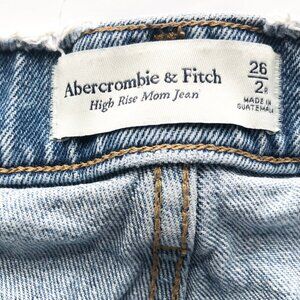 Abercrombie & Fitch High Rise Mom Jeans. Button & zip closure, 5 pocket, size 26/2 regular, ripped distressed, knees are ripped more than original factory distressing-see photos. Smoke and pet free home.