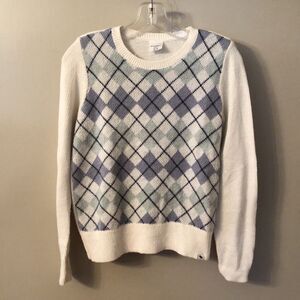 ABERCROMBIE KIDS SIZE 15/16 WHITE BLUE ARGYLE LONG SLEEVE COTTON BLEND SWEATER