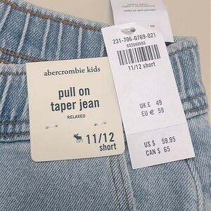 🆕 ABERCROMBIE KIDS relaxed pull on taper jeans size 11/12 Short