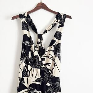 ABERCROMBIE Linen Floral Wrap Open Back Mini Dress Black White XL Petite