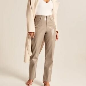 Taupe vegan patent leather 'The 90s Straight Ultra High Rise' pants by Abercrombie & Fitch.