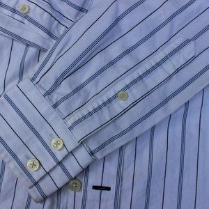 ABERCROMBIE YOUTH BOYS DRESS SHIRT WHITE BLUE PINSTRIPE SIZE MEDIUM BUTTON CUFFS