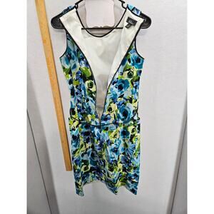 AGB Dress green, blue, black floral dress with pockets! slightly stretchy material, only top is lined, back zippered closure, size 8