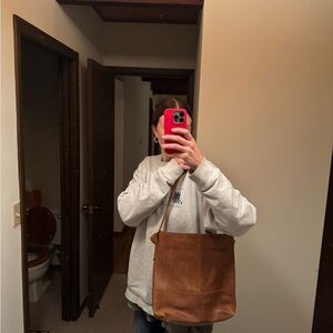 Stylish brown leather shoulder bag. Features a spacious interior. Perfect for everyday use. only used once, the inside is clean and perfect!