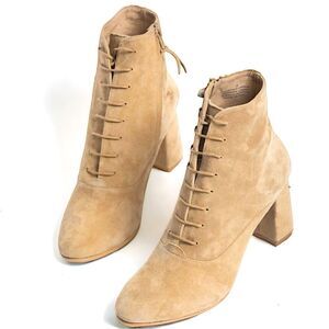 Beautifully and Ethically Made, excellent condition, Soft Almond Suede, Leather lining and footbed, suede wrapped block heel, inner ankle zip, really comfortable and true to size, Able local & global, Condori Lace Up boots, very rare, size 9
