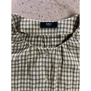 ABLE Earthtone Check Puff Sleeve Top XL Cottagecore Neutral Blouse