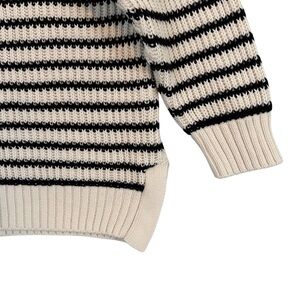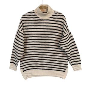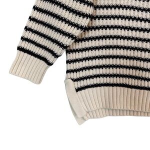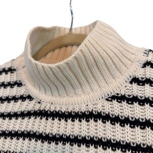 ABLE Rose Sweater M Striped Organic Cotton Knit Ivory Black Turtleneck Pullover