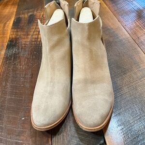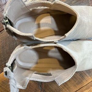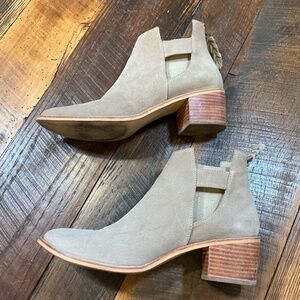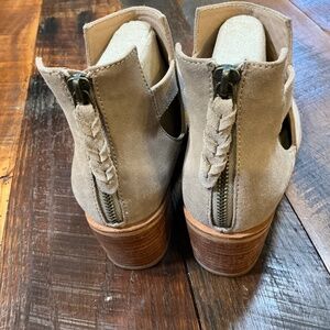 ABLE Women’s Gobal Gamboa Cutout Suede Boots Taupe Size 9 – Braided Back Zip