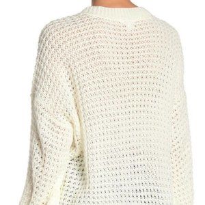 ABOUND Ivory Long Blouson Sleeve Crew Neck Knit Pullover Sweater Womens M NWT